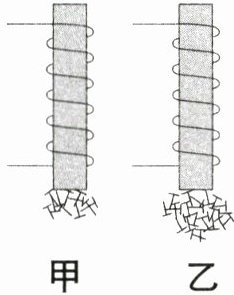 (1)小明找来导线、铁芯、电池,组装好电磁铁,要使电磁铁从图甲的现象到图乙的现象,小明在操作时应采用的方法是( )。