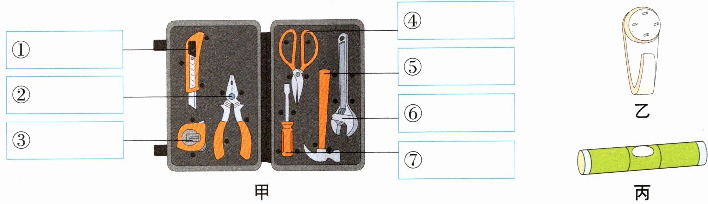 1.①美工刀 ②钳子 ③卷尺 ④剪刀 ⑤羊角锤 ⑥扳手 ⑦螺丝刀 2.卷尺 羊角锤 3.B