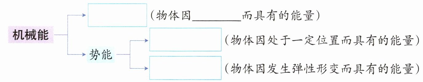 机械能→______(物体因______而具有的能量)