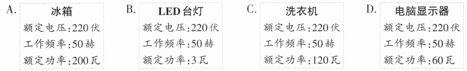 6. 在工作时间相同的情况下,下列用电器用电最少的是( )。