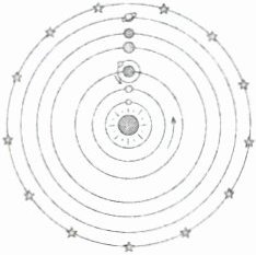 2. 聪聪在北京天文馆里观看了一部纪录片,了解了人类认识地球运动的历史。其中有两个代表性学说,右下图所展现的代表性学说是“______”,提出这个学说的天文学家是______。( )