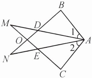 (2)因为∠1=∠2,所以∠BAN=∠CAM.由
