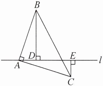 9. 如图,在直角三角形$ABC$中,直角顶点$A在直线l$上,$AB= AC$,过点$B$,$C分别作直线l$的垂线,垂足分别为$D$,$E$.求证:$\triangle ABD\cong\triangle CAE$.