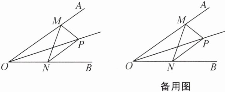 (1)证明:如图,过点P分别作PC⊥OA于点C,PD⊥MN于点D,PE⊥OB于点E.因为MP平分∠AMN,PC⊥OA,PD⊥MN,所以PC=PD.因为NP平分∠MNB,PD⊥MN,PE⊥OB,所以PD=PE,所以PC=PE,所以OP平分∠AOB.