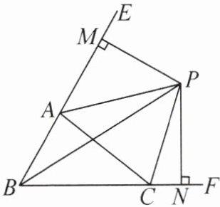 2. 如图,已知 AP,CP 分别是△ABC 的外角∠DAC,∠ECA 的平分线,PM⊥BD,PN⊥BE,垂足分别为 M,N,则 PM 与 PN 的关系是 (