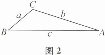 (2)解:a²+b²<c².证明如下:如图,过点A作AD⊥BC,交BC的延长线于点D.设CD=x.因为在Rt△ADC中,AD²=b²−x²,在Rt△ADB中,AD²=c²−(a+x)²,所以b²−x²=c²−(a+x²,化简,得c²−a²−b²=2ax.因为a>0,x>0,所以2ax>0,所以c²−a²−b²>0,所以c²>a²+b²,即a²+b²<c².