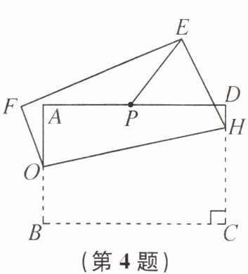 4. (盐城市亭湖区期中)如图,在长方形ABCD中,已知AB= 2,BC= 4,O,P分别是边AB,AD的中点,H是边CD上的一个动点,连接OH.将四边形OBCH沿OH折叠,得到四边形OFEH.连接PE,则PE长的最小值是______.