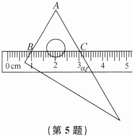 5. (2024 宿迁市沭阳县期中)将含 30°角的直角三角板和直尺按如图所示的方式放置. 已知∠α= 60°,点 B,C 表示的刻度分别为 1 cm,3 cm,则线段 AB 的长为 ______ cm.