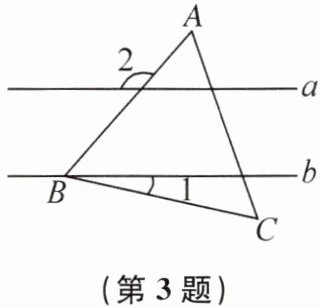 3. (2024 淮安市淮阴区一模)已知直线 a//b,将等边三角形 ABC 按如图所示的方式放置,点 B 在直线 b 上. 若∠2= 132°,则∠1的度数为 ( )