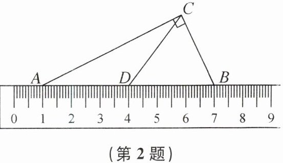 2. (2024 盐城市亭湖区期中)一技术人员用刻度尺(单位:cm)测量某三角形部件的尺寸.如图,已知∠ACB= 90°,D为边AB的中点,点A,B对应的刻度为1,7,则CD的长为(