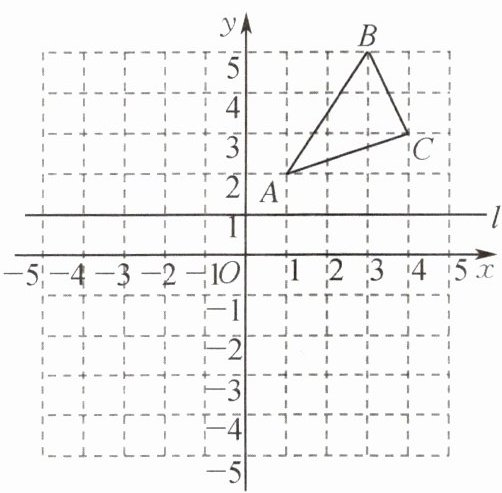 5.(南京市玄武区期末)在平面直角坐标系中,$\triangle ABC$的位置如图所示,直线l经过点$(0,1)$,并与x轴平行,$\triangle A_{1}B_{1}C_{1}与\triangle ABC$关于直线l对称.