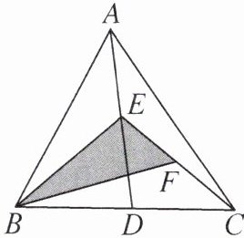 1 提示:因为 D 为 BC 中点,所以 $S_{\triangle ABD}=S_{\triangle ACD}=\frac{1}{2}S_{\triangle ABC}=2\ \text{cm}^2$.因为 E 为 AD 的中点,所以 $S_{\triangle CDE}=S_{\triangle ACE}=\frac{1}{2}S_{\triangle ACD}=1\ \text{cm}^2$.因为 D 为 BC 的中点,所以 $S_{\triangle BCE}=2S_{\triangle CDE}=2\ \text{cm}^2$.因为 F 为 EC 中点,所以 $S_{\triangle BEF}=\frac{1}{2}S_{\triangle BCE}=1\ \text{cm}^2$.