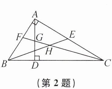 2. 如图,在△ABC 中,∠BAC= 90°,AD 是高,BE 是中线,CF 是角平分线,CF 交 AD 于点 G,交 BE 于点 H.下面说法正确的是 (