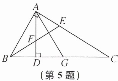 5. 如图,在△ABC 中,∠BAC= 90°,AD⊥BC,∠ABC 的平分线 BE 交 AD 于点 F,AG 平分∠DAC.现有下列结论:①∠BAD= ∠C;②∠AEF= ∠AFE;③∠EBC= ∠C;④AG⊥EF.其中正确的结论有______(填序号).