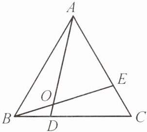 例6 (盐城市东台市期末)如图,$\triangle ABC$是等边三角形,$D$,$E分别是边BC$,$CA$上的点,且$BD = CE$,$AD$,$BE相交于点O$.