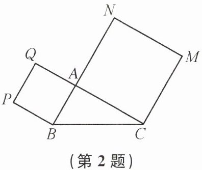 2. 如图,Rt△ABC 的周长为 30 cm,面积为$30 cm^2,$以 AB,AC 为边向外作正方形ABPQ 和正方形 ACMN,则这两个正方形的面积之和为