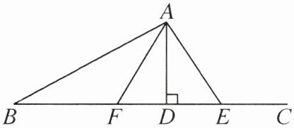 5. 如图,$AD\perp BC$,垂足为$D$,且$AD= 4$,$BD= 8$.点$E从点B沿射线BC$方向以每秒 2 个单位长度的速度匀速运动,$F为BE$的中点,连接$AE$,$AF$,设点$E运动的时间为t\ \text{s}$.