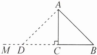 证明:作$CM\perp AC$,垂足为$C$,在$CM上截取CD= BC$,连接$AD$.因为$\angle ACD= 90^{\circ}$,所以$AC^{2}+CD^{2}= AD^{2}$.因为$AC^{2}+BC^{2}= AB^{2}$,$CD= BC$,所以$AD^{2}= AB^{2}$,所以$AD= AB$,即$\triangle ADB$是等腰三角形.所以$AC\perp DB$,所以$\triangle ABC$是直角三角形.