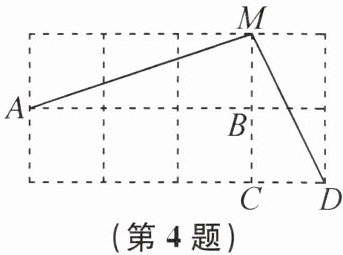 4. 如图是由边长相等的小正方形组成的网格,则$\angle MDC-\angle MAB= $