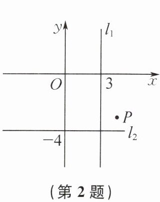 2. (2025 连云港市期末)如图,在平面直角坐标系xOy中,直线$l_1$过点(3,0)且平行于y轴,直线$l_2$过点(0,-4)且平行于x轴,点P的坐标为(a,b).根据图中点P的位置,下列结论正确的是(