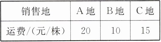 |运费/(元/株)|20|10|15|