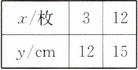 (1)由题意可知,每投入一枚棋子,水面高度上升的数量一定,所以y是x的一次函数.设一次函数表达式为y=kx+b(k,b为常数,且k≠0).将x=3,y=12和x=12,y=15代入,得{3k+b=12,12k+b=15,解得{k=1/3,b=11,所以y与x的函数表达式为y=1/3x+11.