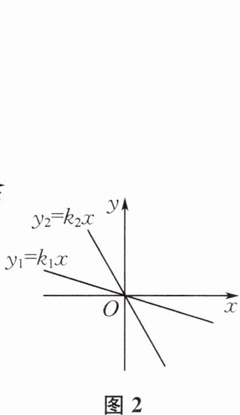 (3) 如图2,已知正比例函数$y_{1}= k_{1}x,y_{2}= k_{2}x$在同一平面直角坐标系中,则$k_{1}与k_{2}$的大小关系为______.