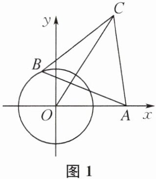 小明在做作业时碰到这样一道题:如图1,点 O 为坐标原点,$\odot O$的半径为 1,点$A(2,0)$. 动点 B 在$\odot O$上,连接 AB,作等边三角形 ABC(A,B,C 为顺时针顺序),求 OC 长的最大值.