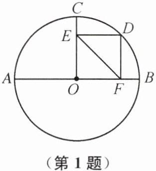 1. 如图,$AB是\odot O$的直径,半径$OC\perp AB$. 若点$D在劣弧CB上由点C向点B$运动(不与点$B,C$重合),且$DE\perp OC,DF\perp AB$,垂足分别是$E,F$,则$EF$的长度 (