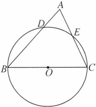 7. 如图,以$△ABC$的边 BC 为直径的⊙O 分别交边 AB,AC 于点 D,E. 设$∠A= α$,则$\widehat {DE}$的度数为