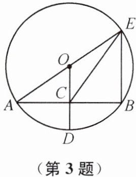3. 如图,$\odot O$的半径 OD 垂直于弦 AB,垂足为 C,连接 AO 并延长交$\odot O$于点 E,连接 BE,CE. 若$AB= 8,CD= 2$,则$\triangle BCE$的面积为(