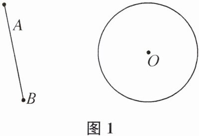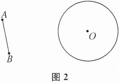 (2)作法如下:①作线段AB的垂直平分线m,在直线m 上取点O',使得O'A等于⊙O的半径长,作⊙O的等圆⊙O';②连接OO',作OO'的垂直平分线l,作点B关于直线l的对称点B',点A关于直线l的对称点A';③连接A'B',线段A'B'即为所求.当点O'位于AB的右侧时,如图2,线段A'B'即为所求.