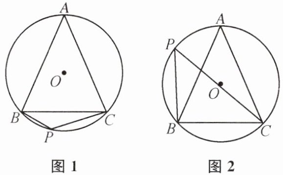 (1)请你只用无刻度的直尺,分别画出图1和图2中∠BPC的平分线;