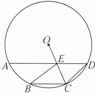(2)设BD交CE于点F.因为AD//BC,所以∠EDF=∠CBF.因为$\overset{\frown}{BC}=\overset{\frown}{CD}$,所以BC=CD,OC⊥BD,所以BF=DF.又因为∠DFE=∠BFC,所以△DEF≌△BCF,所以DE=BC.又由