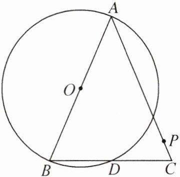 6. 如图,在$\triangle ABC$中,$AB= AC$,以 AB 为直径的$\odot O$经过点 D,点 P 是边 AC 上一点(不与点 A,C 重合).请仅用无刻度直尺按要求作图,保留作图痕迹,不写作法.