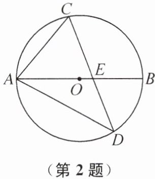 2. (2024 盐城市盐都区期中)如图,AB 是$\odot O$的直径,弦 CD 交 AB 于点 E,$\angle ACD= 60^{\circ}$,$\angle ADC= 40^{\circ}$,则$\angle AED$的度数为(