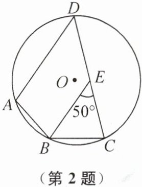 2. (2024 吉林省中考)如图,四边形 ABCD 内接于$\odot O$.过点 B 作$BE// AD$,交 CD 于点 E.若$∠BEC= 50^{\circ }$,则$∠ABC$的度数是(