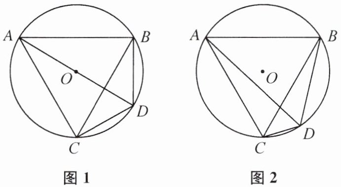(2)如图 2,若$∠ACB= 60^{\circ }$,点 C,D 在 AB 同侧,判断 AD-BD 与 CD 的数量关系并说明理由.