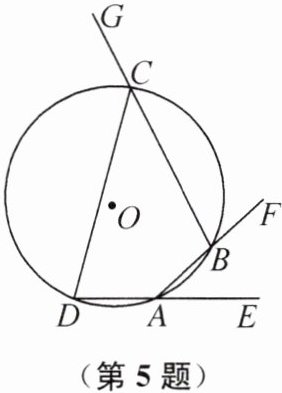 5. 如图,四边形 ABCD 内接于$\odot O$,它的 3 个外角$∠EAB,∠FBC,∠GCD的度数之比为1:2:4$,则$∠D= $