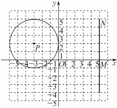 7. 如图,$\odot P的圆心为点P(-3,2)$,半径为3,直线$MN过点M(5,0)且平行于y$轴,点$N在点M$的上方.