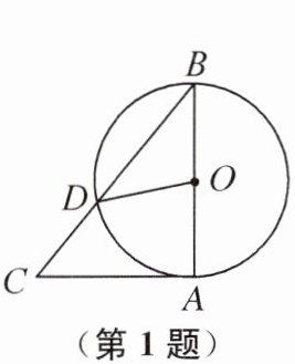 1. (2024 山西省中考)如图,已知△ABC,以AB 为直径的⊙O 交 BC 于点 D,与 AC 相切于点 A,连接 OD. 若∠AOD= 80°,则∠C 的度数为(