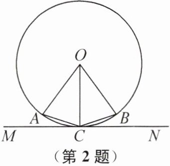 2. (2024 福建省中考)如图,已知点 A,B 在⊙O 上,∠AOB= 72°,直线 MN 与⊙O 相切,切点为 C,且 C 为$\overset{\frown}{AB}$的中点,则∠ACM 的度数为(