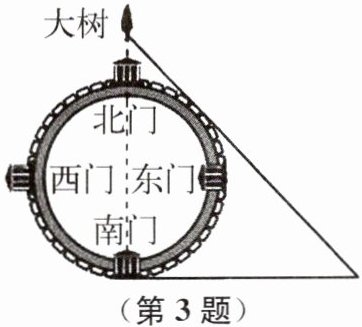 3. 小明对《数书九章》中的“遥度圆城”问题进行了改编:如图,一座圆形城堡有正东、正南、正西和正北四个门,出南门向东走一段路程后刚好看 到北门外的一棵大树,向树的方向走9里到达城堡边,再往前走6里到达树下,则该城堡的外围直径为
