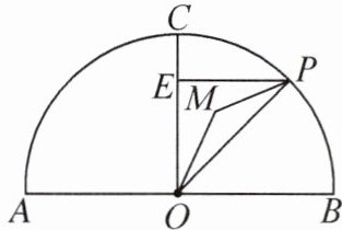 5. 如图,AB 为$\odot O$的直径,$AO= 4$,点 C 在半圆上,$OC⊥AB$,垂足为 O,P 为半圆上任意一点,过点 P 作$PE⊥OC$于点 E,设$\triangle OPE$的内心为点 M,连接 OM,MP.