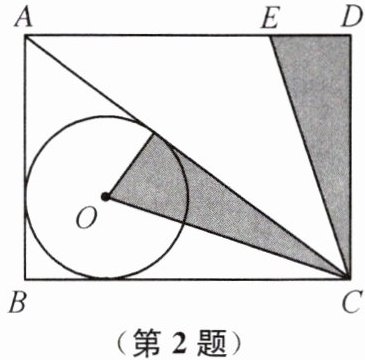 2. 如图,AC 是矩形 ABCD 的对角线,$\odot O是\triangle ABC$的内切圆,E 是边 AD 上一点,连接 CE. 将$\triangle CDE$绕点 C 逆时针旋转,当 CD 落到对角线 AC 上时,点 E 恰与圆心 O 重合. 已知$AE= 6$,则下列结论不正确的是(