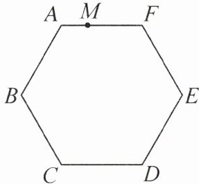 5. 如图,在正六边形 ABCDEF 中,$AB= 6$,点 M 在边 AF 上,且$AM= 2$. 若经过点 M 的直线$l$将正六边形的面积平分,则直线$l$被正六边形所截的线段长是______