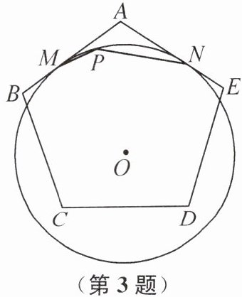 3. (2024 南京市玄武区期中)如图,正五边形 ABCDE 的边 AB,AE 与$\odot O$分别相切于点 M,N,点 P 在$\widehat{MN}$上,连接 PM,PN,则$\angle MPN$的度数为