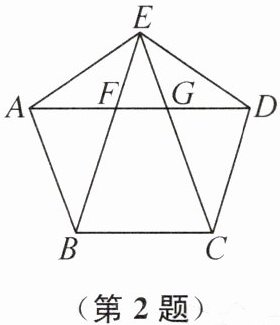 2. 如图,正五边形的五个内角都相等,五条边都相等,连接对角线 AD,BE,CE,线段 AD 分别与 BE 和 CE 相交于点 F,G,给出下列结论:①∠AGC= 108°;②AG= AE;③∠EBC= 2∠BEC;④BF= DE.其中正确的有 (