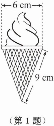 1. 如图,冰淇淋蛋筒下部呈圆锥形,则蛋筒圆锥部分包装纸的面积(接缝忽略不计)为(