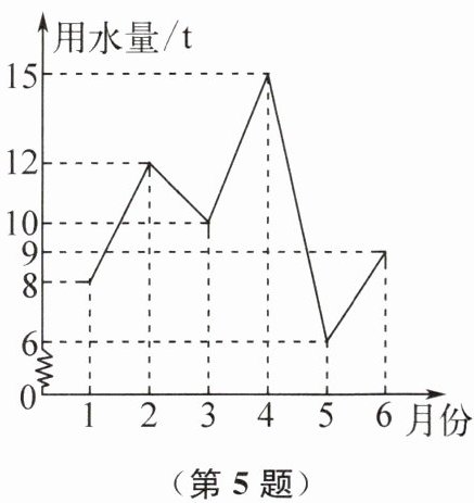 5. 如图,小明将自己家1月份至6月份的用水量绘制成了折线图,那么小明家这6个月的月平均用水量是